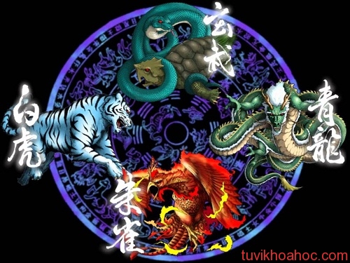 Tứ thú là bộ hình xăm rất quen thuộc. Tứ thú bao gồm rồng xanh, hổ trắng, chim công và rùa đen. Theo thuật phong thủy thì bốn con vật này phải được xăm vào đúng vị trí của nó thì mới tốt. Do đó, người ta hay nói: “tả Thanh Long, hữu Bạch hổ, tiền Chu tước, hậu Huyền vũ”. Điều này có nghĩa là bên cánh tay trái nên xăm rồng xanh, cánh tay phải xăm hình hổ trắng, ngực trước xăm chim công, sau lưng là xăm hình rùa đen có con rắn quấn quanh.