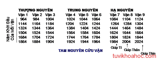 Trong lịch pháp, cứ mỗi 60 năm gọi là một nguyên, thượng nguyên quản giữ 60 năm, trung nguyên quản giữ 60 năm, hạ nguyên quản giữ 60 năm, tam nguyên có tổng cộng 180 năm.