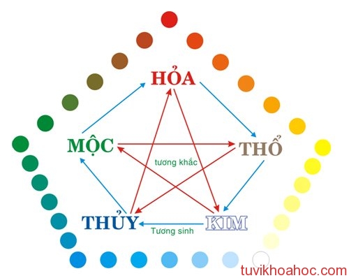 Quan hệ tương khắc Ngũ hành là: Mộc khắc Thổ, Thổ khắc Thủy, Thủy khắc Hỏa, Hỏa khắc Kim, Kim khắc Mộc.