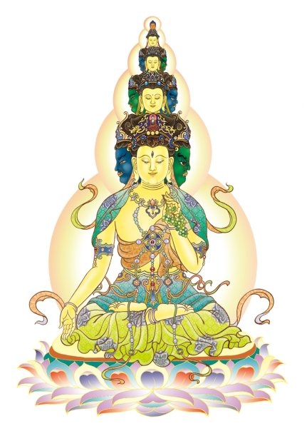 Hán văn: Nhược vi sanh sanh chi xứ bất ly chư Phật biên giả。đương ư Hóa Phật Thủ。
