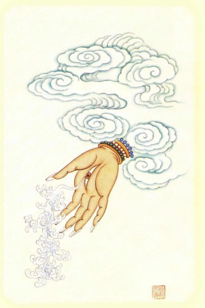 Việt dịch: Nếu muốn được đạo tiên, nên cầu nơi tay cầm hóa hiện mây ngũ sắc.