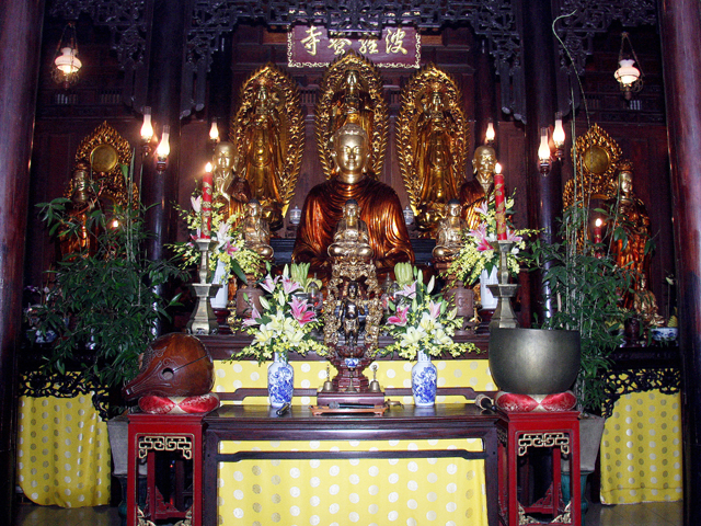 Chùa thuộc phái Liễu Quán nặng về pháp môn Tịnh độ. Cách bố trí tượng thờ ở chánh điện phía tiền đường nhìn một cách khái quát như sau: Nơi cao nhất chính giữa thờ tượng 18 vị AlaHán (Đây là một trong bốn bộ tượng xưa nhất còn lưu giữ tại Huế). Tầng tiếp theo thờ Phật Tam Thế: Phía trong giữa là Phật Thích Ca, bên trái là Phật A-di-Đà, bên phải là Phật A-di-Lặc. Phía ngoài thấp xuống một bậc ở giữa là Phật Thích Ca, bên trái là Ca Diếp, bên phải là AnanĐa. Tầng thấp nhất trên chánh điện phía trước ở giữa là Phật Di Lặc, bên trái là Đức Thế Chí, bên phải là Quan thế Âm.