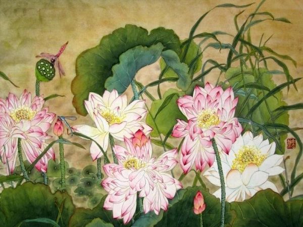 Tranh phong thủy hợp với người tuổi Tuất như: hoa mẫu đơn có thể là tranh 8, 9 bông. Sẽ mang lại vinh hoa phú quý và mọi công việc trong cuộc sống thuận lợi. Ngoài ra tranh hoa điểu, sơn thủy giúp trấn trạch an gia của gia đình.