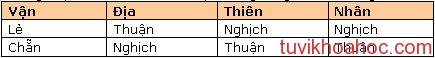 Bước 3: mỗi hướng lại chia làm 3 phần Thiên, Địa và Nhân. Dùng la bàn để xác định xem hướng nằm ở phần nào theo bảng sau: