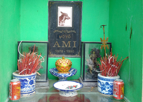 Ông Sinh kể, xác thú cưng được chôn cất đầu tiên tại đây chính là chú chó Ami – người bạn của ông Sinh. “Đó là giống Becgie Đức, rất đẹp. Năm 1975, tôi đã mua nó bằng cả một cây vàng”.