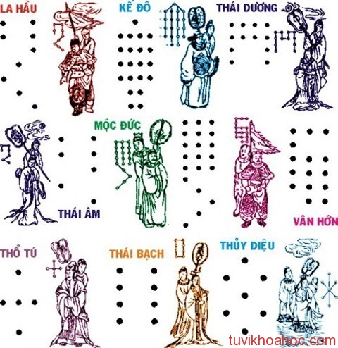 - 12 Sao Khuê (Khuê mộc lang) – hành Mộc – vừa tốt vừa xấu